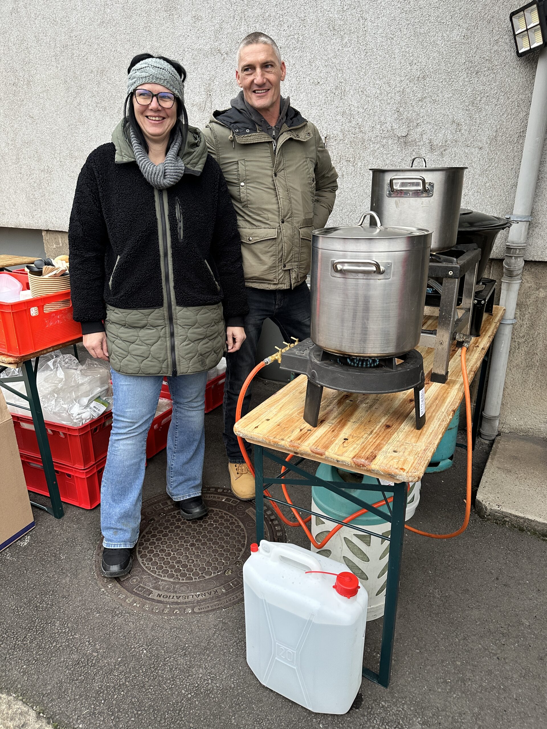 Heute haben wir viele tolle Menschen im Team, wo sich jede/r Einzelne/r total bemüht, damit nichts schief geht. Schon am Vormittag bringen Menschen uns selbst gebackene Kekse, selbst gemachtes Tiramisu in kleinen Schälchen, viele Schachteln vorzüglichen Kuchen. DANKE Rita Plasser & Gatte, für die großartigen Kuchen, DANKE der anonymen Spenderin für dieses tolle Tiramisu, das man von einer Patisserie nicht besser geliefert bekommt, und DANKE an unsere Manuela, die mit ihrem Mann Peter, das Kesselgulasch zubereitete und spendete, es war einfach köstlich!