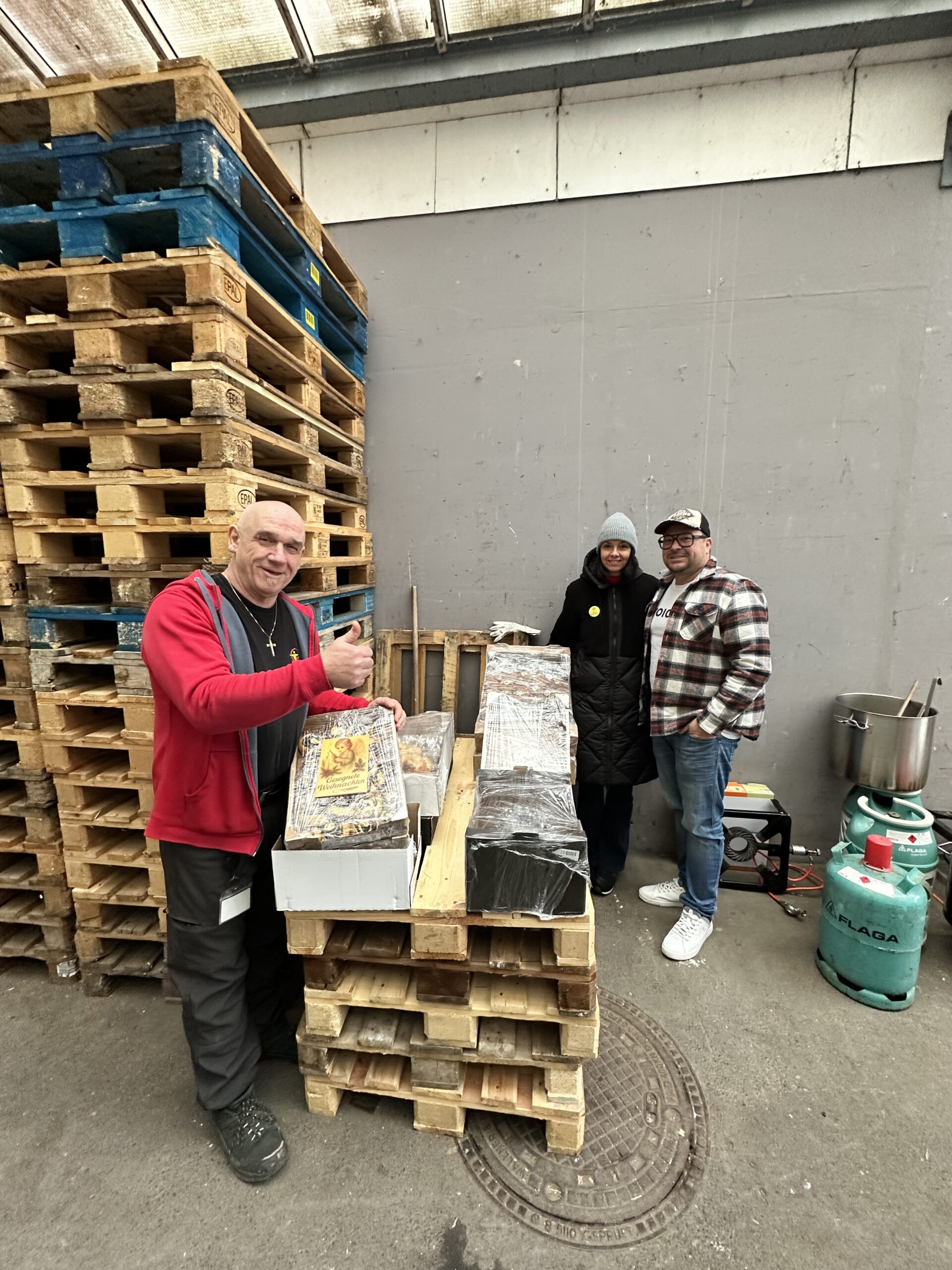 Zum Mittagstisch gibt es heute Puten-Geschnetzeltes als Franz Kupetzius, was uns vorzüglich schmeckte, DANKE Franz für diese tolle Spende. Obwohl schon seit heute früh 5 Helfer:innen wegen Krankheit oder Terminkollision absagten, bin ich guten Mutes dass wir am Nachmittag genug Leute sind, um alles zu bewältigen. Der letzte Verteiltag vor Heilig Abend ist immer stressig, wir haben heute heißes Gulasch, heißen Tee, Eure Weihnachtsschuhschachteln verteilen wir direkt an unsere Schützlinge und wir haben heute auch die normale Essens- und Hygieneartikelausgabe. Ein gebündeltes Programm für uns, das ganz viele wunderschöne Emotionen hervorrufen wird.