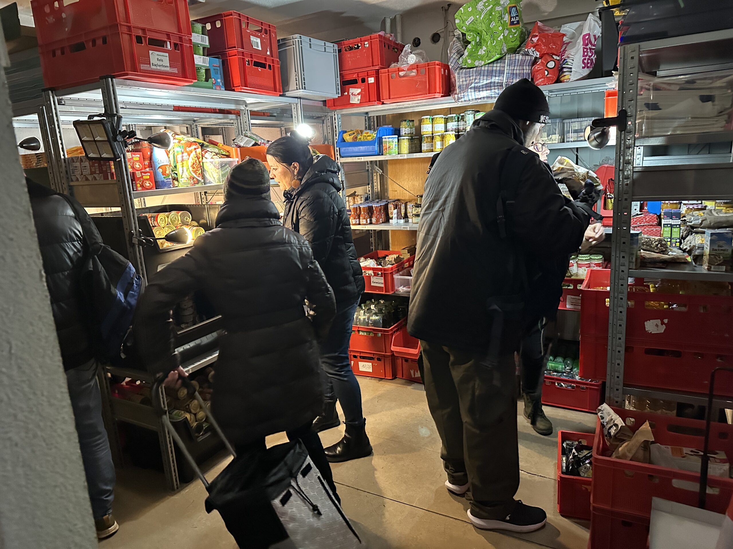 Frau M. steht vor mir und bittet um neue Schuhe, da ihre schon kaputt sind und es regnet rein, sie hat immer nasse und kalte Füße. Anni hat leider keine passenden, also suchen wir passende Winterschuhe im Lager und bringen diese nächste Woche mit. Manchen aber in der Warteschlange, muss ich auch erklären dass wir keine Boutique und kein Feinkostladen sind, wir sind kein 2. und 3. Ausstatter, Schuhe bekommt nur jemand, der in wirklich kaputten Schuhen vor mir steht. Und, manchmal wird im Büro ausgesucht, was man an haltbaren Fertiggerichten möchte. Das geht nicht, wir haben nicht die Ressourcen dass sich alle aussuchen können, was sie haben wollen, da werden wir nicht fertig. Und, wer wirklich Hunger hat, dem schmeckt ein Erdäpfelgulasch oder ein Chili Con Carne auch. Aber was das Aussuchen verhindert ist schlicht, dass wir die Zeit nicht haben die richtige Dose zu suchen, das geht nicht, liebe Leute.