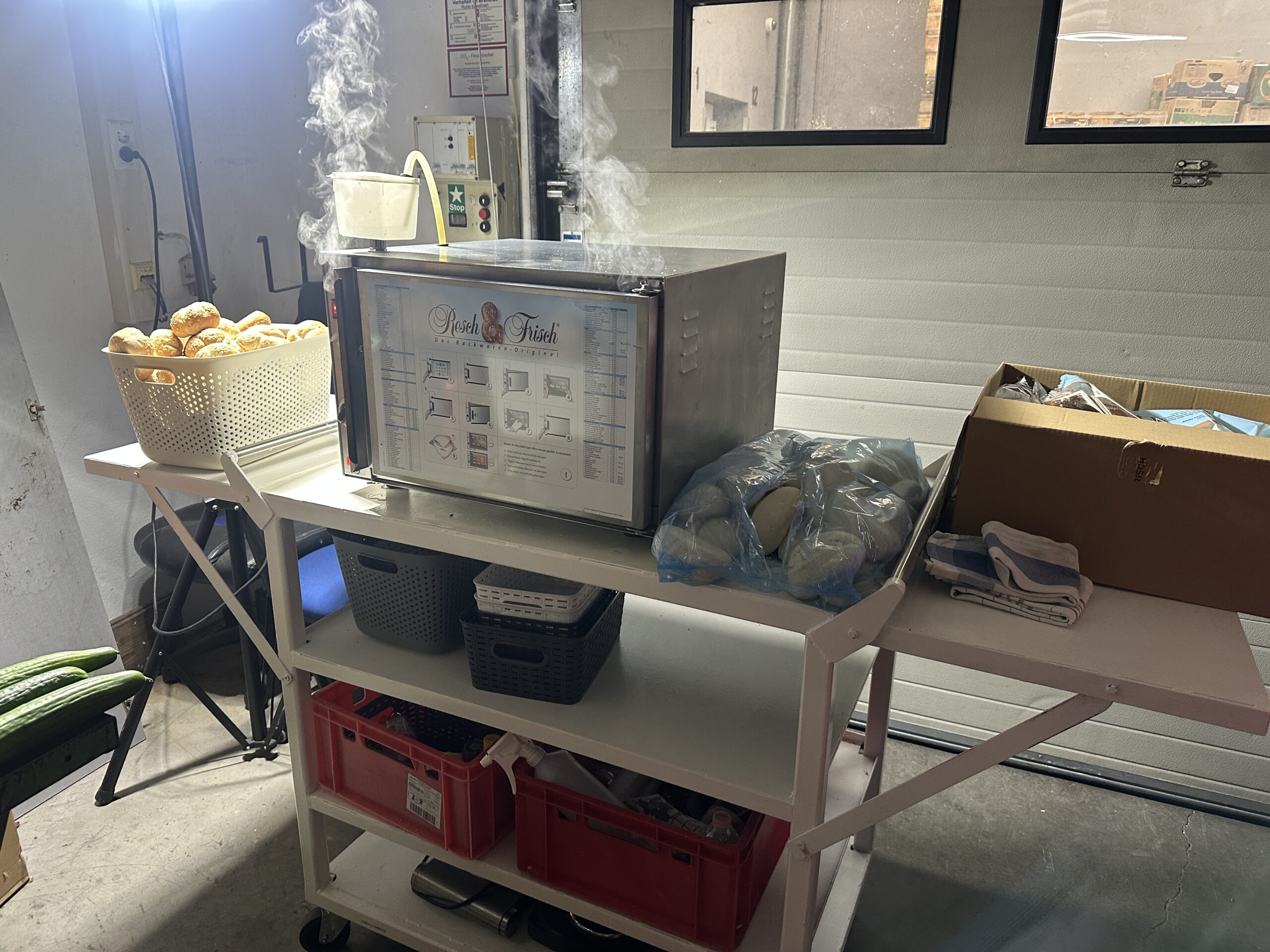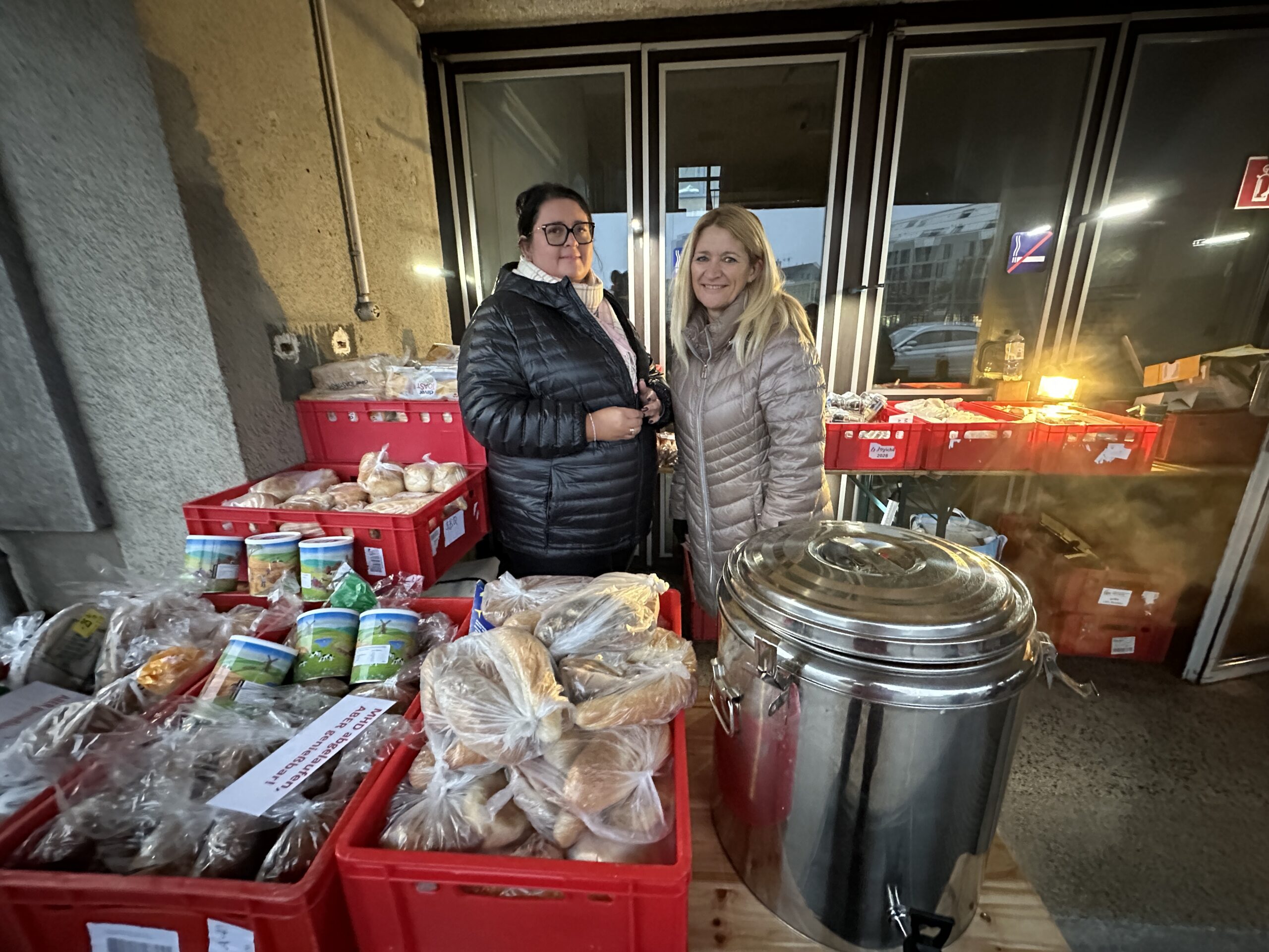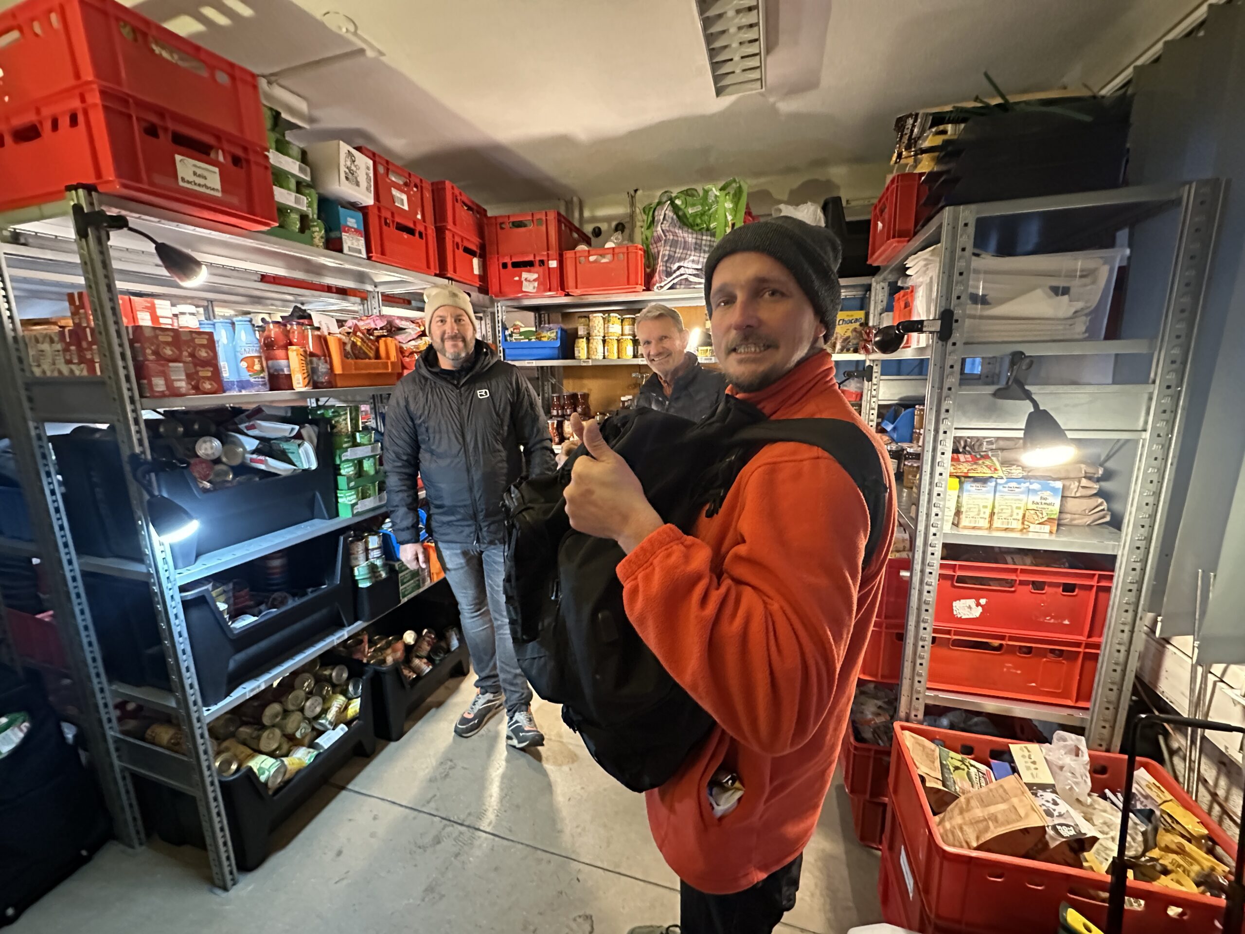 Man sieht das unsere Neuen schnell in all die Vorbereitungen finden, jedes Mal wird es noch besser und macht dann auch umso mehr Spaß. Die Zusammenarbeit macht Spaß und bereichert das Miteinander ungemein. Zum Mittagstisch kochte unsere Anni ein schmackhaftes Erdäpfelgulasch mit Gurkensalat, einfach köstlich. Die prall gefüllten Lebensmittelboxen sind schon eingeladen in den Bus, die mobilen Kühl- und Tiefkühlboxen werden erst kurz vor der Abfahrt nach Linz eingeladen, die Akkus müssen bis abends durchhalten.