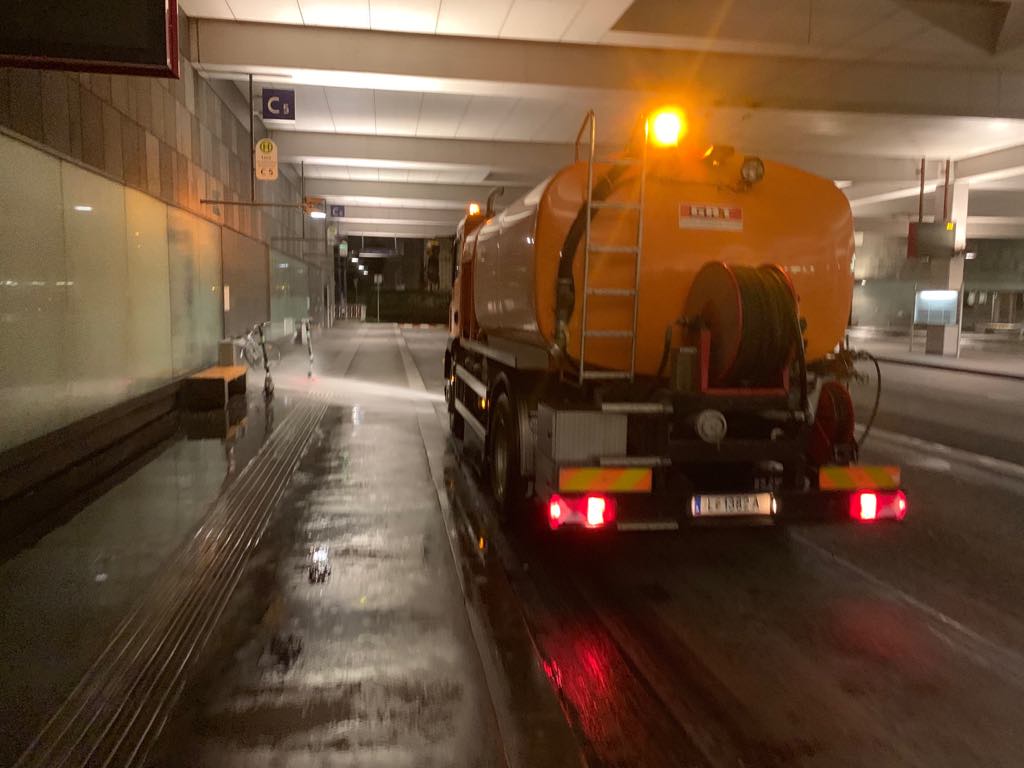 Vieles habe ich selbst gesehen, selbst fotografiert oder gefilmt. Am 10.5.2019 um 00.20 Uhr zum Beispiel, war ich am Terminal weil mich ein Hilferuf der ÖBB Security erreichte, ich holte unser Not Paket und fuhr dann ins Terminal, um direkt und ohne Umwege zu helfen. Damals fuhr gerade der Waschwagen eines Dienstleisters des Magistrats Linz durch das alte Busterminal und richtete mit Absicht seine Wasserdüsen nicht auf den Asphalt, den er reinigen sollte, sondern wie im Bild ersichtlich, direkt auf die Obdachlosen im Terminal, sodass alle nass wurden und teilweise durch den Wasserdruck des Waschwagens von den Bänken gespült wurden. Ich bin dem LKW nachgelaufen und wollte mit dem Fahrer reden, der aber sperrte seinen LKW zu, zeigte mir den Stinkefinger und lachte dreckig aus seinem Führerhaus und machte so weiter.