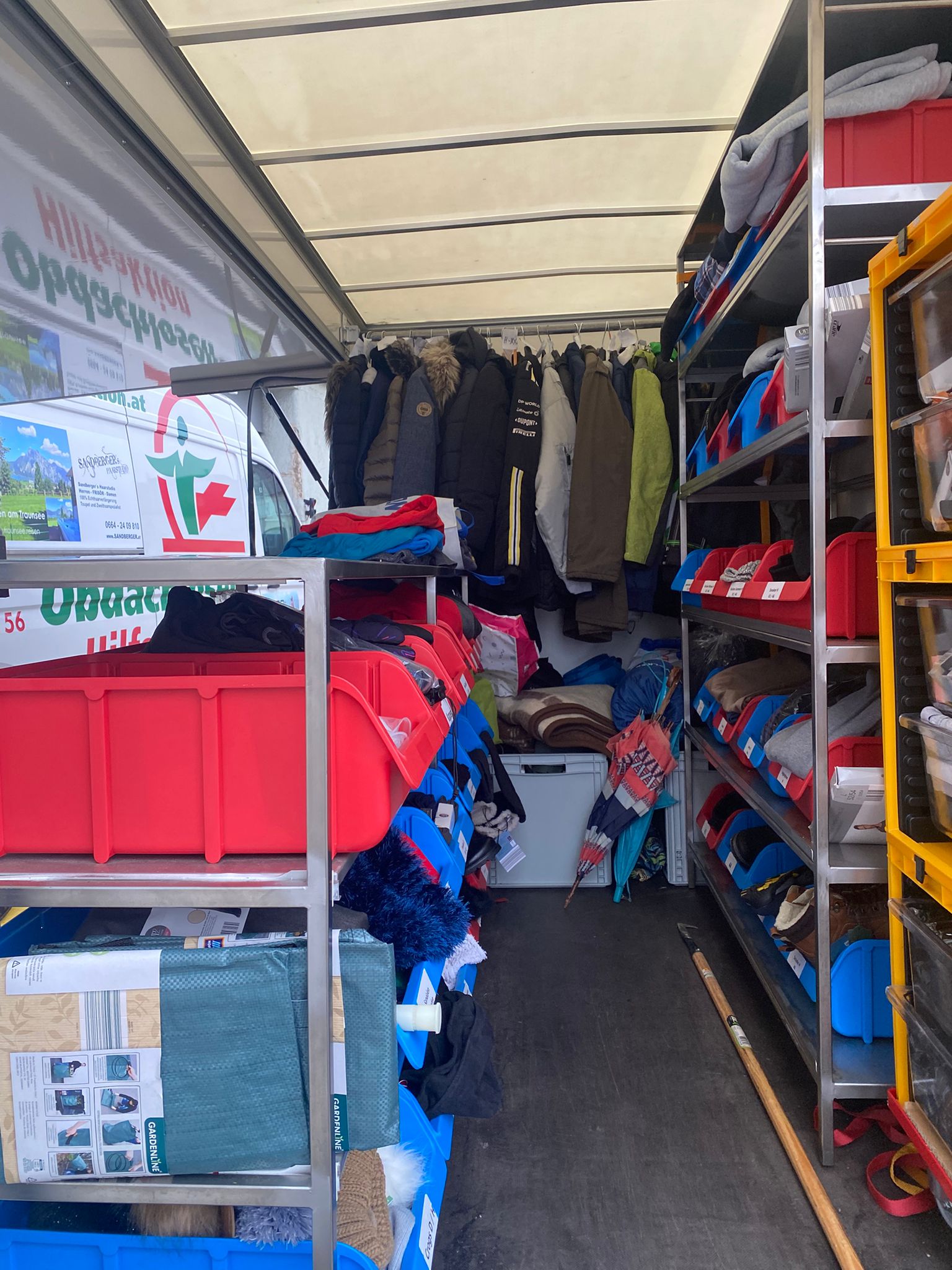 Angekommen in Linz, positionieren wir den Anhänger und räumen die Boxen aus dem Bus, sie werden gleich in die Regale im Büro geräumt, damit nichts länger herumsteht. Dann kommt Stefan, der den Verein „Start“ hat und dort viele junge Menschen als Mitglieder hat. Der Verein „Start“ vergibt Stipendien an diese Menschen, im gleichen Atemzug müssen sich aber diese Menschen sozial engagieren, und das möchten heute 3 junge Frauen machen. Nur, sie sind viel zu früh hier, da wir erst in gut 1 Stunde beginnen mit der Ausgabe, Stefan und die jungen Frauen werden sich den Verteil-Donnerstag ein andermal anschauen, da sie heute noch Termine haben. Ich bin gespannt, was aus dieser Kooperation entstehen wird.