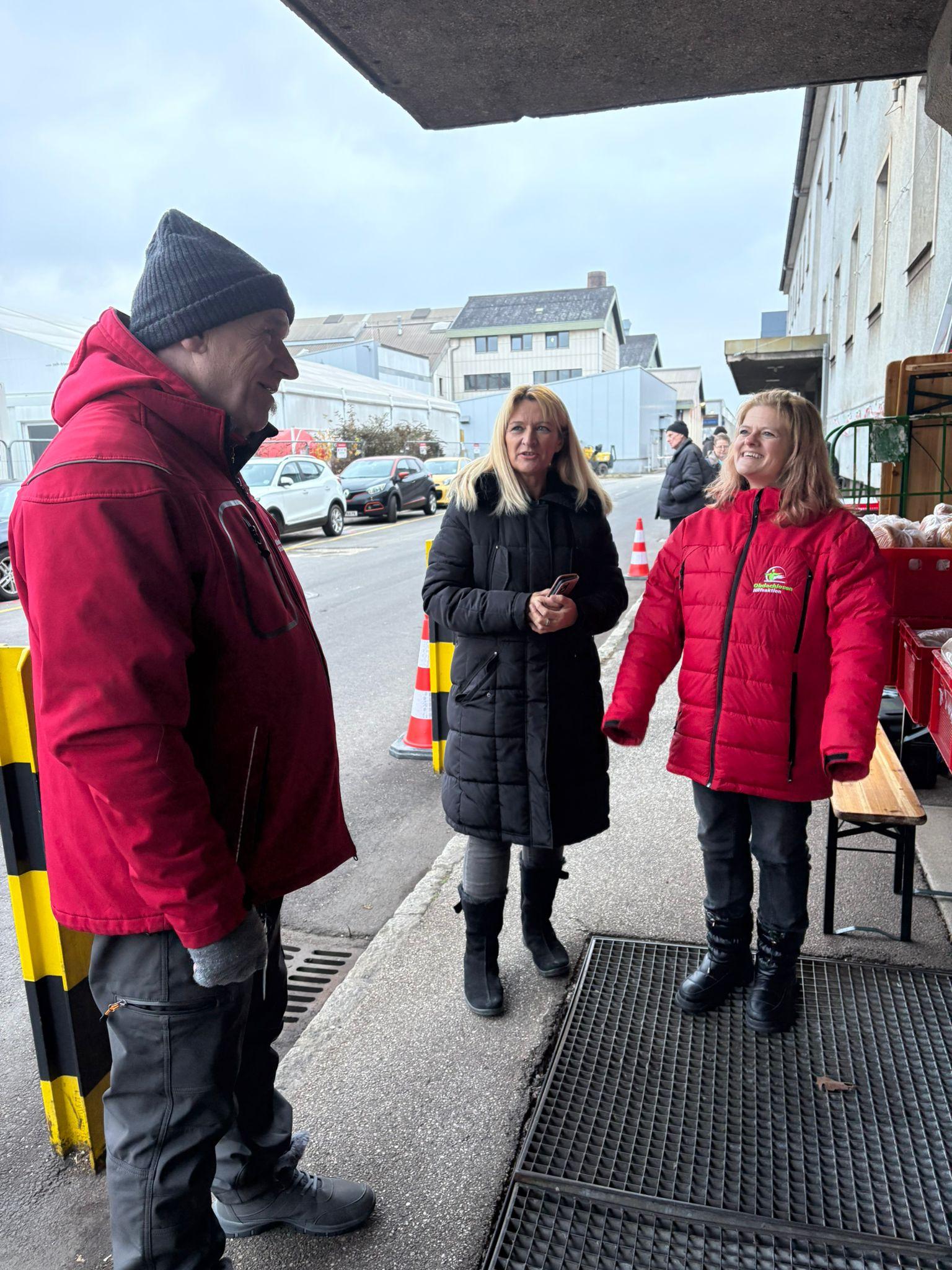 Wenn es Kleidung gibt, ist sie besonders dankbar. Eine dicke Jacke, eine Haube, ein Schal, neue Handschuhe, das sind für sie keine Dinge, sondern Lebensretter. Manchmal hilft ihr Anni vom Team beim Aussuchen, schaut, was passen könnte, was warm genug ist, haben wir etwas nicht in passender Größe, wird es notiert und nächste Woche mitgenommen.