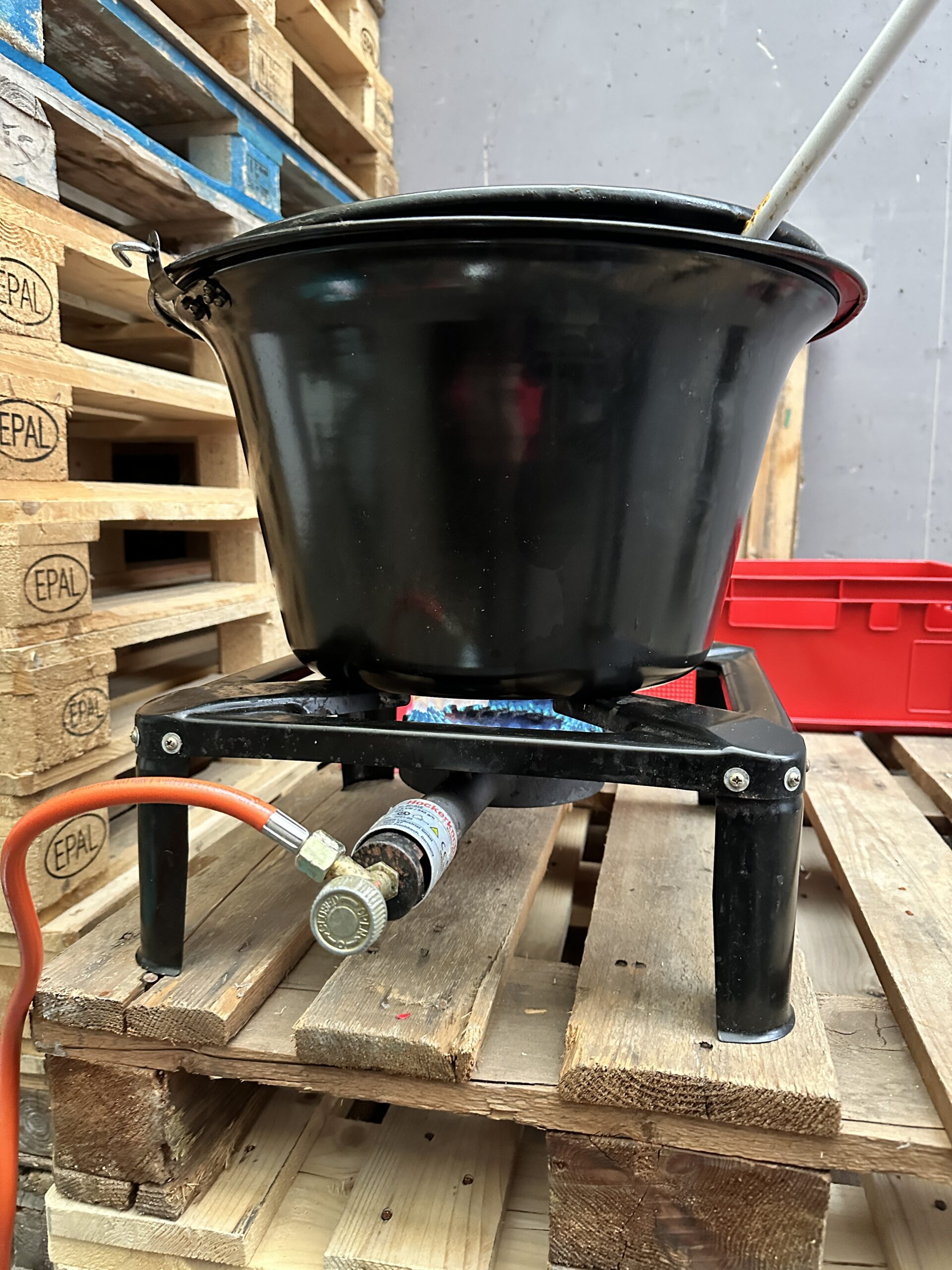 Ich habe vor Jahren in weiser Voraussicht einen zweiten Punschkocher gekauft, mit dem wir an jedem Donnerstag das Wasser für den Tee aufkochen. Den hole ich aus dem Kleiderlager, dazu unsere Power Bank, das heißt wir kochen den Tee und das Gulasch im Lager auf und hängen es dann bei der Abfahrt nach Linz an die Power Bank und werden es so einstellen, dass nichts auskühlt und warm bleibt. Stark genug ist die Power Bank, bin gespannt ob es klappt. Das heißt wir haben heute zwei riesengroße Punschkocher mit, einer mit etwa 30 Liter Tee gefüllt und der zweite mit Gulasch, bis obenhin.