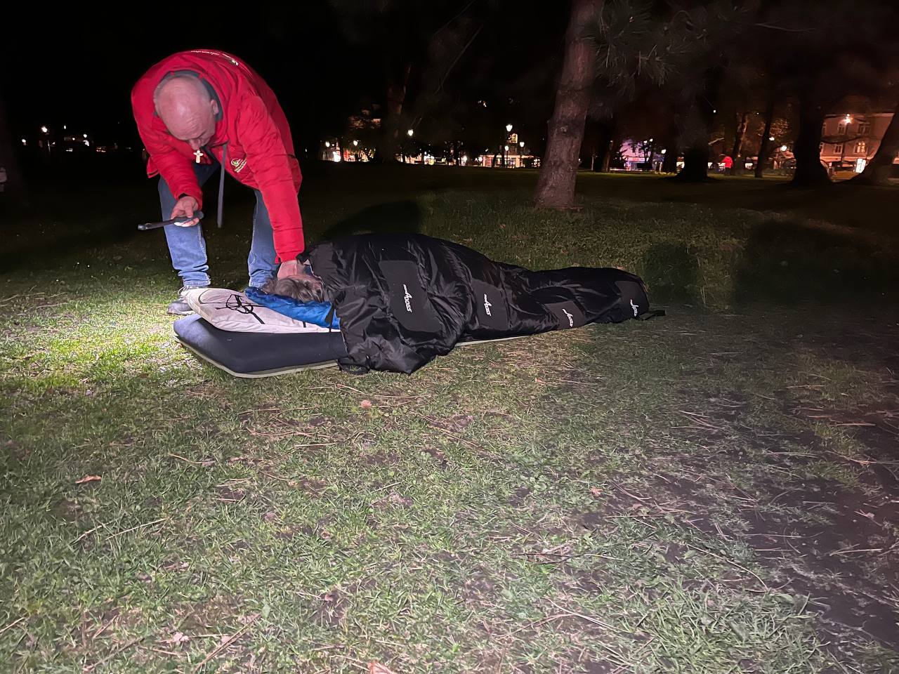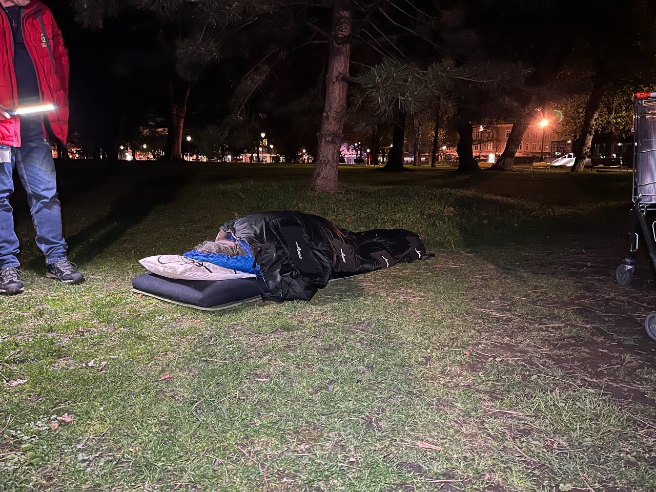 Joachim, Florian und ich gehen zum Bus, wo immer noch Franziska und Emma stehen und mit unserem Team reden. „Es wird Zeit“, drängle ich, es ist schon 23.55 Uhr und wir haben noch einige Stationen vor uns. Wir starten den Rest der Linz-Tour mit dem jetzigen Ziel „Gaby“, beim Volksgarten. Am Abend war Gaby nicht an ihrem Platz anzutreffen, wir hoffen dass sie jetzt dort ist, unterm Baum mitten im Dreck und auf nasser Erde. Bus abgestellt und von Weitem sehen wir Gaby liegen. Wir warten zusammen und gehen dann gemeinsam zu Gaby, ich wecke sie auf und sag ihr: „Gaby, wir haben alles was du uns angeschafft hast, besorgt und tun es in eines der Einkaufswägen“. Schlafsack, Thermo-Leggins, neue Unterwäsche und neue Socken, neue Schuhe, eine neue Winterjacke, Haube und Handschuhe und einige Getränke sowie einige Lebensmittel. Gaby lächelt und bedankt sich mehrmals und entschuldigt sich: „Ich habe schon geschlafen“, na dann schlaf weiter, pass aber auf das dir die Rumänen nicht wieder alles stehlen. Rumänen Banden stehlen Gaby seit Wochen alles verwertbare, Lebensmittel, Decken von uns und viele, viele Dinge, die wir für Gaby zusammenstellten. Ich verstehe es nicht, wenn man selbst GAST in einem Land ist, dass man dann die Menschen des jeweiligen Landes bestiehlt, bedroht und verächtlich macht? Diese „Gäste“ haben in meinen Augen jedes Gastrecht verwirkt, JEDES!