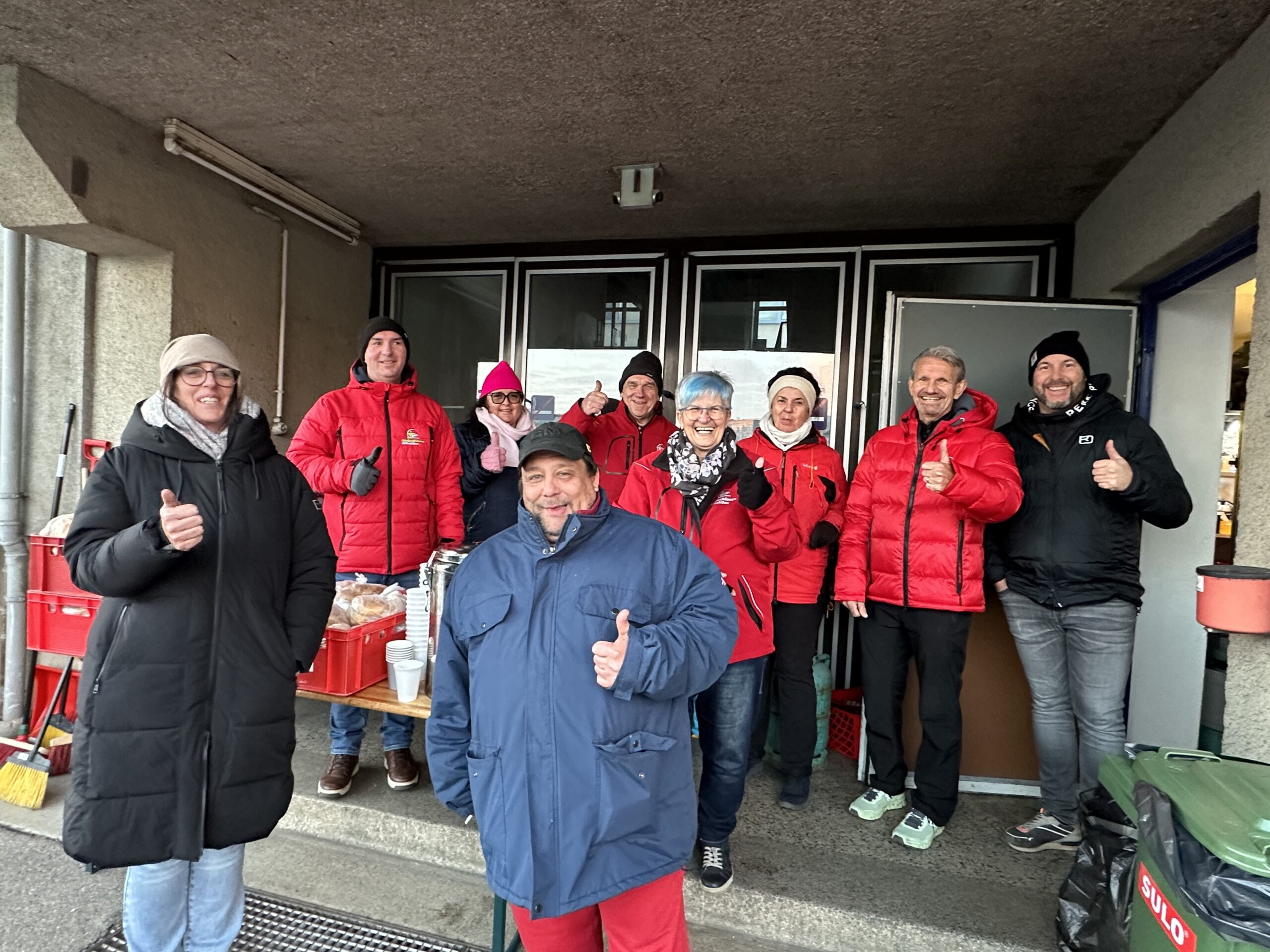 Ich habe heute Gasflaschen mit Heizpaneelen aufgestellt, dass sich unsere Schützlinge etwas wärmen können, was gerne gemacht wird. Ich weise auf die Gefahr hin, dass die Jacken nicht angesengt werden und nichts passiert. Es ist ruhig in der Warteschlange, alle warten diszipliniert, bis sie dran sind. Der kalte Wind der geht, macht es echt unangenehm heute. Auch mir ist es inzwischen kalt, in den Fingern, den Zehen und überhaupt. Ich gehe durch die Reihen und frage unser Team ob eh alles in Ordnung ist? „Ja, alles OK, alles bestens“. Ich merke wie sensibel und emotional bzw. wie weinerlich die Stimmung heute ist. Und, gefühlt fällt mir jeder zweite um den Hals und bedankt sich aufrichtig, dass es uns gibt und dass wir für unsere Schützlinge da sind.