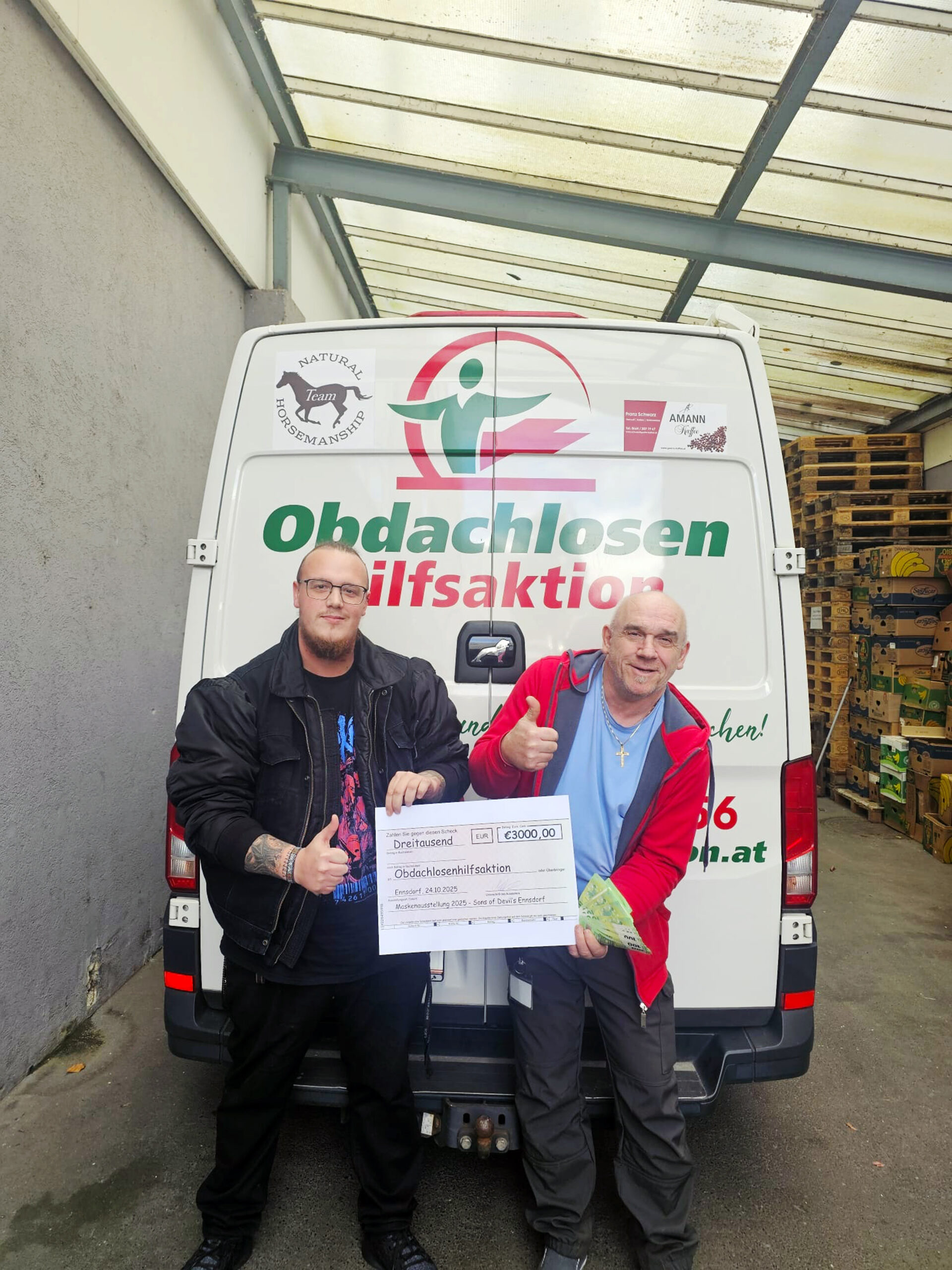 ...kamen dank persönlicher Spenden, 300,- Geldspende der FPÖ Ennsdorf, auch durch 2-Malige Maskenversteigerungen, durch einige private Geldspenden, durch Lose-Verkauf (Tombola) und durch die schmackhafte Gastro der „Devils“ zusammen. Echt, ich bin total sprachlos und kann gar nicht oft genug DANKE und VERGELT’S GOTT sagen. Ich verneige mich in Demut und ziehe meinen imaginären Hut. DANKE an das gesamte „Devils“ Team, im Besonderen an Marcel (Obmann Son Of Devils) und Angelo (Red Devils Tatoo in Enns) und alle, die im Hintergrund mitgeholfen haben, dass diese Veranstaltung zu dem wurde, was es dann war, nämlich echt eine SENSATION!
