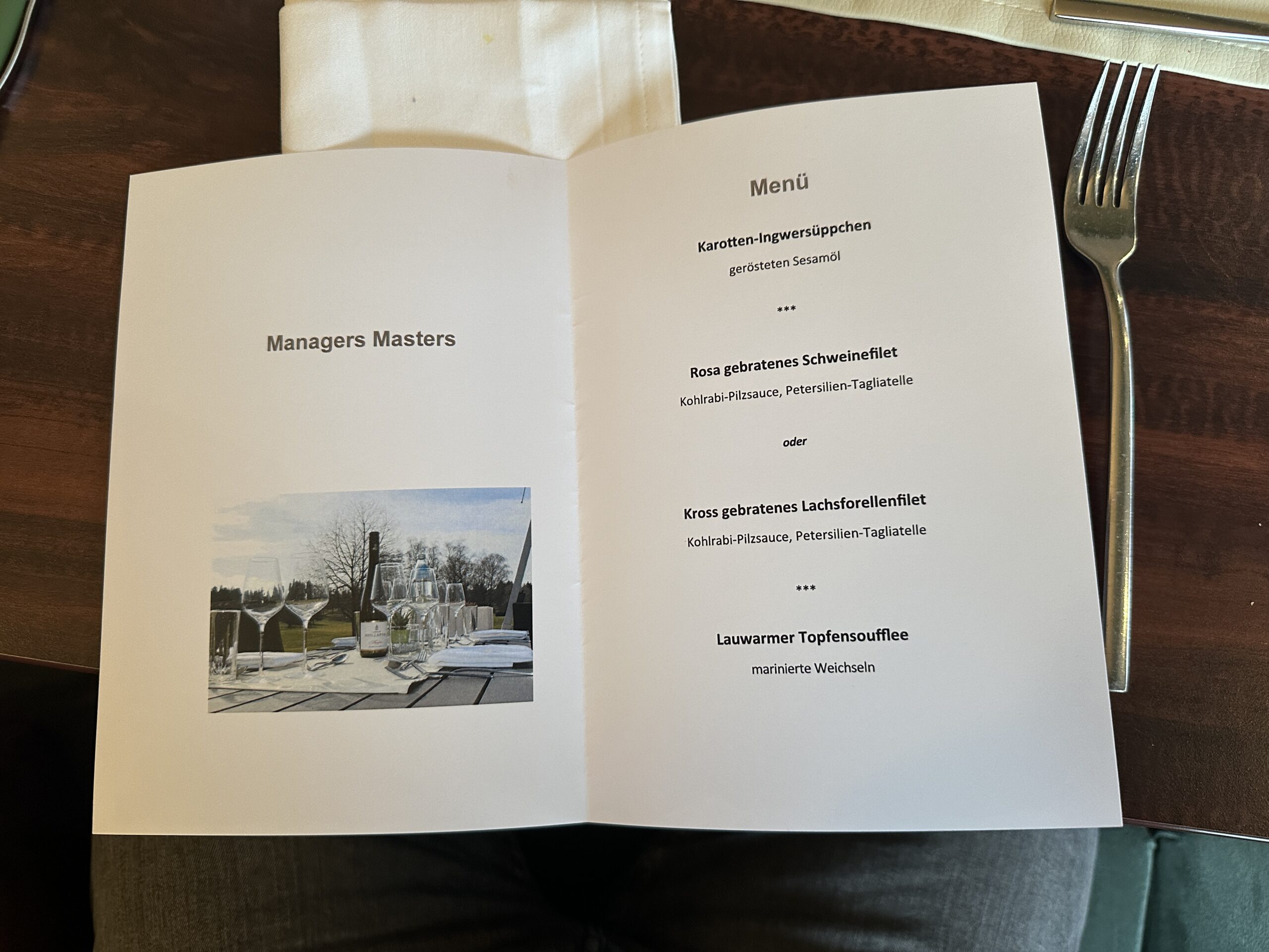 Noch vor dem großartigen Menü gab es die Scheckübergabe an uns. Sensationelle € 4000,- kamen zusammen, Stefan spielte am Loch 16 gegen alle teilnehmenden Teams, wobei ein Team aus 4 Personen bestand, und jedes Team musste 20,- pro Teammitglied bezahlen, um gegen Stefan anzutreten. Ein großartiger Mensch und viele tolle Teilnehmer rundeten hier einen großen Teil der Spenden ab.