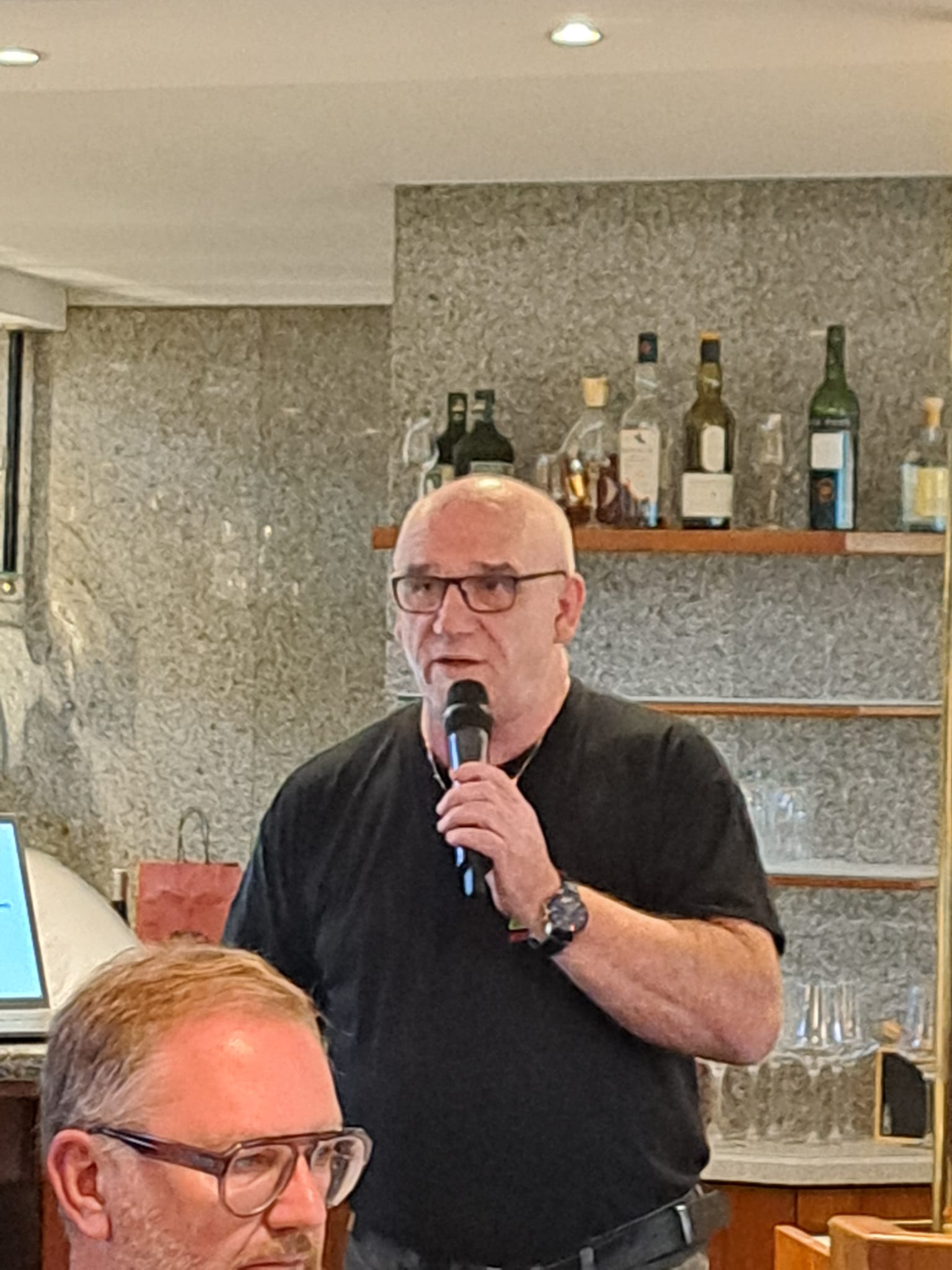 Das Turnier startete um 11 Uhr und war um etwa 16.30 Uhr zu Ende. Danach ging es für die Teilnehmer zu einem kurzen Aperitif auf die Restaurant-Terrasse, wo dann alle auf das weitere Prozedere warteten. Es ging um etwa 18 Uhr weiter mit der Begrüßung im Restaurant durch Stefan, der mir dann das Mikrofon gab, ich durfte etwa 20 Minuten mit einer Präsentation referieren über unseren Verein und die Aktionen. Viele Zuhörer: innen waren perplex und sprachlos, über manche Fakten, die Mimiken sprachen Bände.