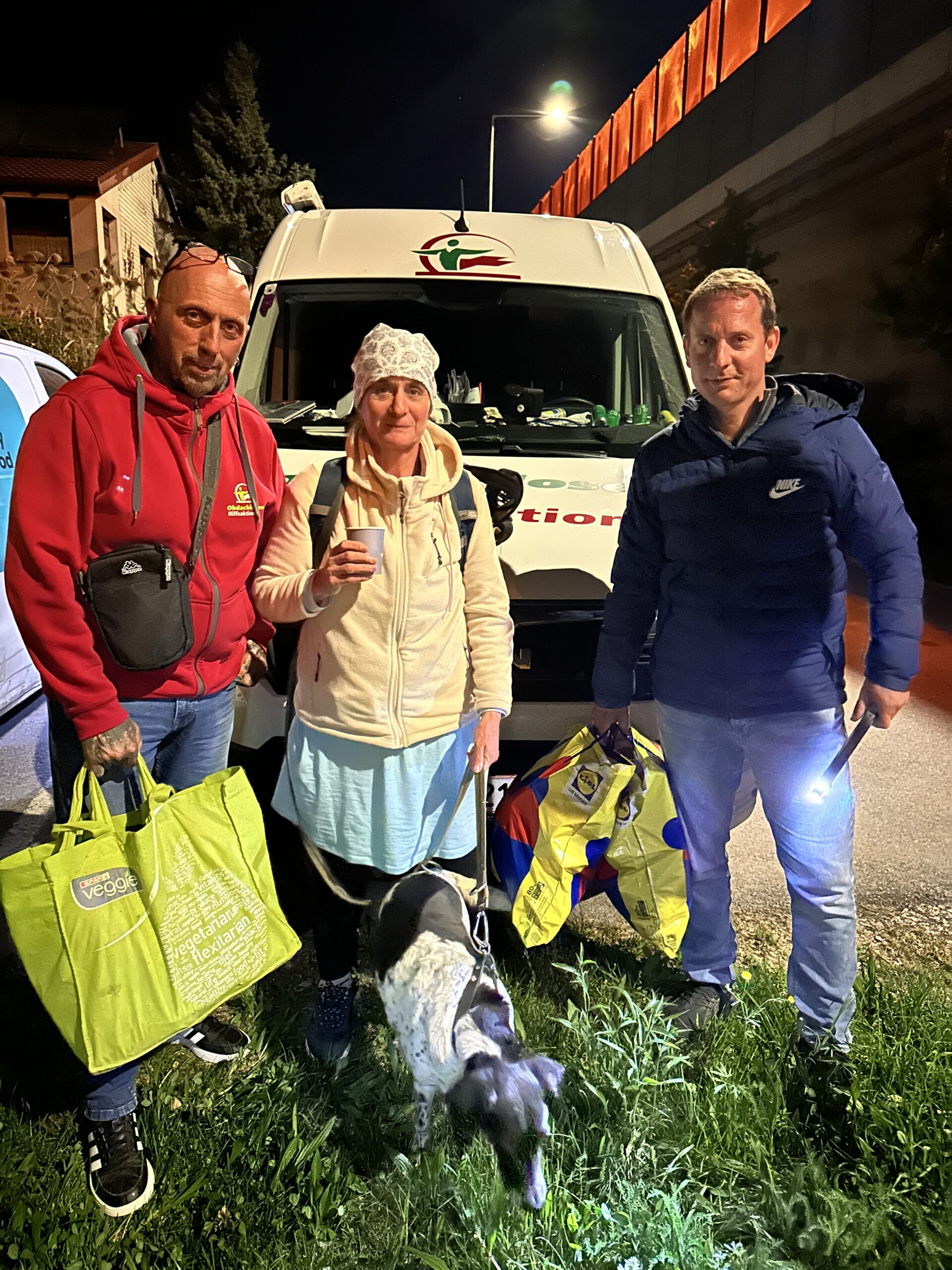 Es ist schon nach Mitternacht und für uns geht es heute ins Finale dieser Tour, zu O. und H., in die letzten DüK’s für heute. Wir haben auch wirklich allen gesagt dass wir sie nicht im Stich lassen und bis wir einen neuen Verteilplatz haben, zumindest 1x im Monat eine Tour fahren wo wir genug Lebensmittel für alle mit dabei haben werden. Großes Aufatmen geht durch die Menschen.
